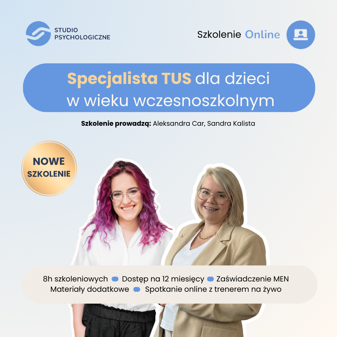 Szkolenie Trener TUS to program skierowany do specjalistów, którzy chcą poszerzyć swoje kompetencje zawodowe. W Studiu Psychologicznym oferujemy kompleksowe szkolenia nie tylko w formie online, lecz także podczas spotkań stacjonarnych w największych polskich miastach. Jeśli jesteś psychologiem, pedagogiem lub nauczycielem i szukasz możliwości zdobycia certyfikatu trenera TUS, zapraszamy na zajęcia prowadzone w Twojej lokalizacji.